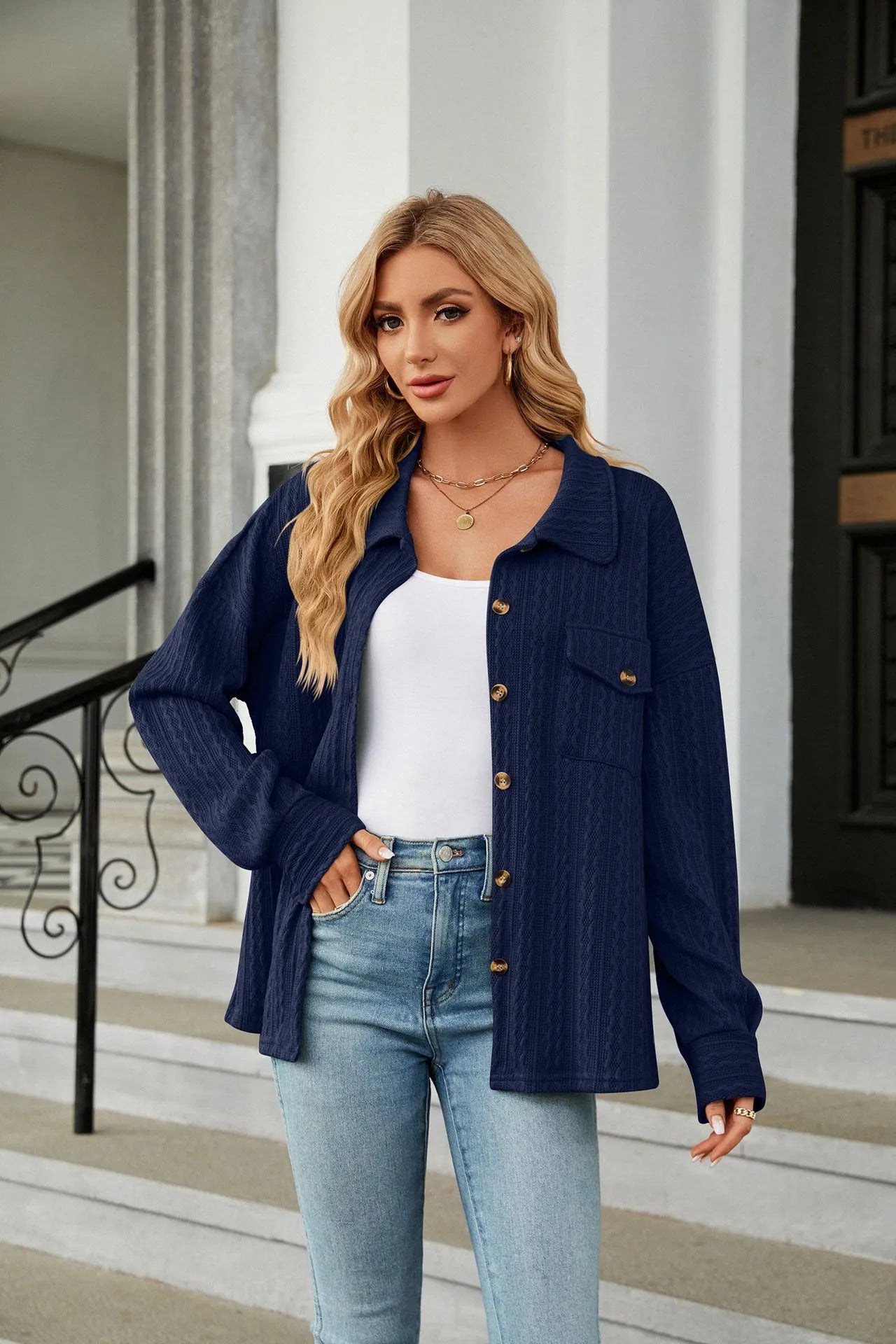 Diese süße Bluse hat lange Ärmel, einen Kragen, eine Brusttasche und Knöpfe. Das Modell ist gemustert und aus einem geschmeidigen Stoff gefertigt.